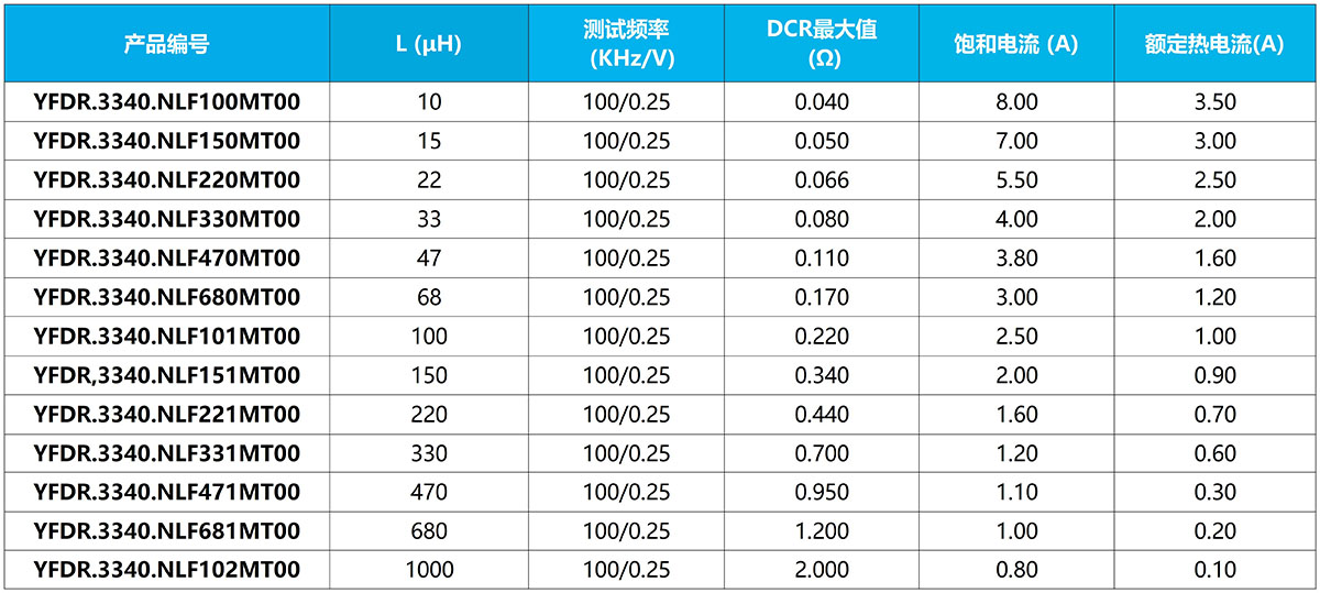 YFDR3316 & YFDR3340 是宇富电子推出的高性能屏蔽功率电感,适用于电源转换、DC-DC模块及高电流电路应用。产品采用一体成型结构,具备优异的磁屏蔽性能,有效降低电磁干扰,提升系统稳定性。具有高饱和电流、低损耗和良好耐温特性,工作温度范围宽(-40℃~+125℃),适用于紧凑型电子设备。YFDR3316与YFDR3340封装分别为3.3×1.6mm和3.3×4.0mm,满足不同空间需求,广泛应用于消费电子、工业控制及通信设备中,品质可靠,支持定制化服务。