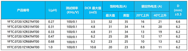 产品介绍:一体成型电感YFTC0650、YFTC0660与YFTC0720是宇富电子为满足高效能电源管理需求而设计的高端磁性元件,广泛应用于DC-DC转换器、通信设备、工业控制及消费类电子产品中。这些产品采用先进的全屏蔽一体成型技术,具备出色的电磁兼容性(EMC),有效减少电磁干扰(EMI),确保电路在高密度集成环境下的稳定运行。产品均...